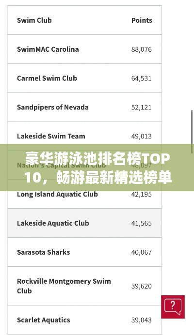 豪华游泳池排名榜TOP10,畅游最新精选榜单